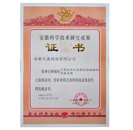 安徽科學技術(shù)研究成果證書(計算機用屏蔽電纜)