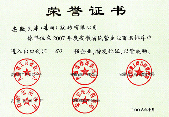 07年度安徽省出口創(chuàng)匯50強(qiáng)