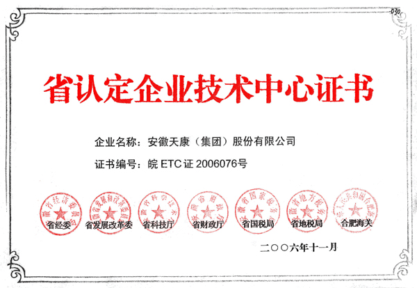 省認(rèn)定企業(yè)技術(shù)中心證書